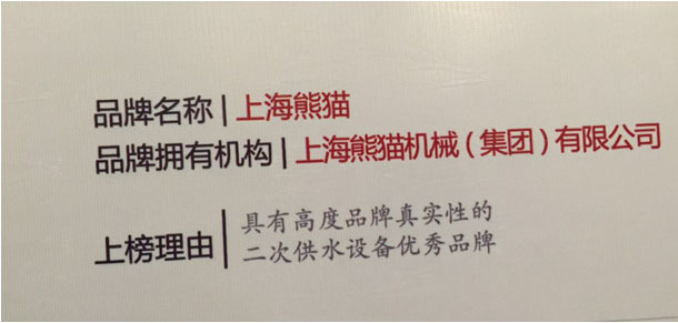 上海熊貓機械(集團)有限公司因具有高度品牌真實性的二次供水設(shè)備優(yōu)秀品牌而榮居榜上。